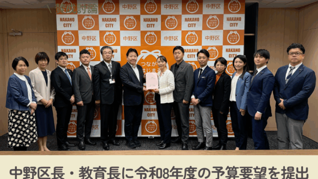 要望・意見書 中野区長・教育長に令和8年度の予算要望を提出しました 2025年10月22日 rikken-nakano https://rikken-nakano.net/wp-content/uploads/2023/05/logo-nakano-rikonemu.png 中野区議会 立憲・国民・ネット・無所属議員団