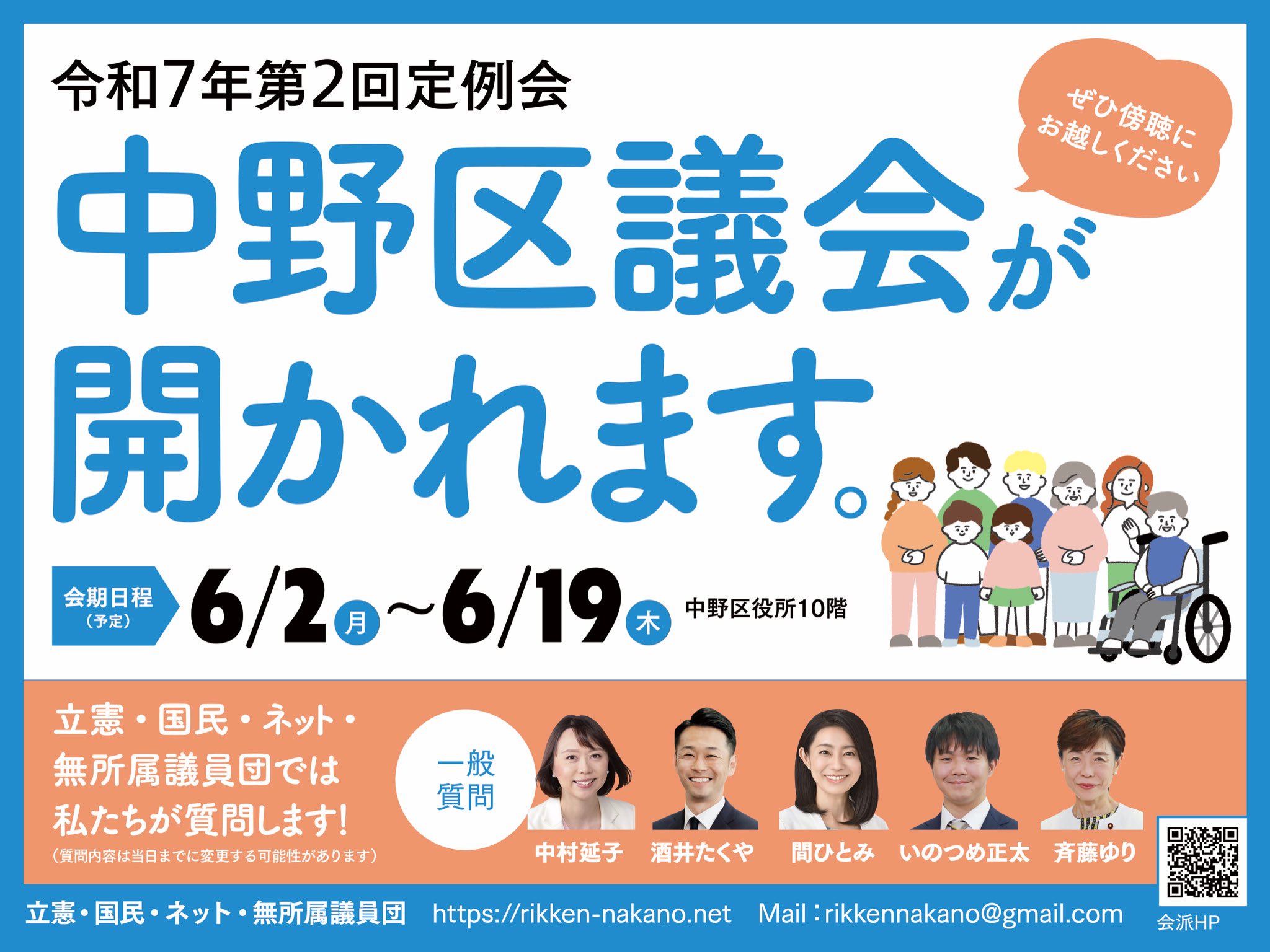 - 登壇者と質問内容:中野区議会ホームページで事前にご覧いただけます!