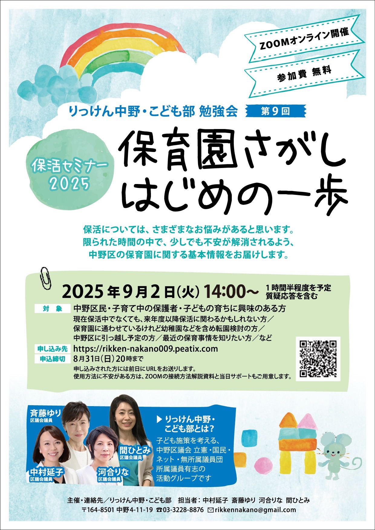 担当者:中村延子 斉藤ゆり 河合りな 間ひとみ(中野区議会議員)