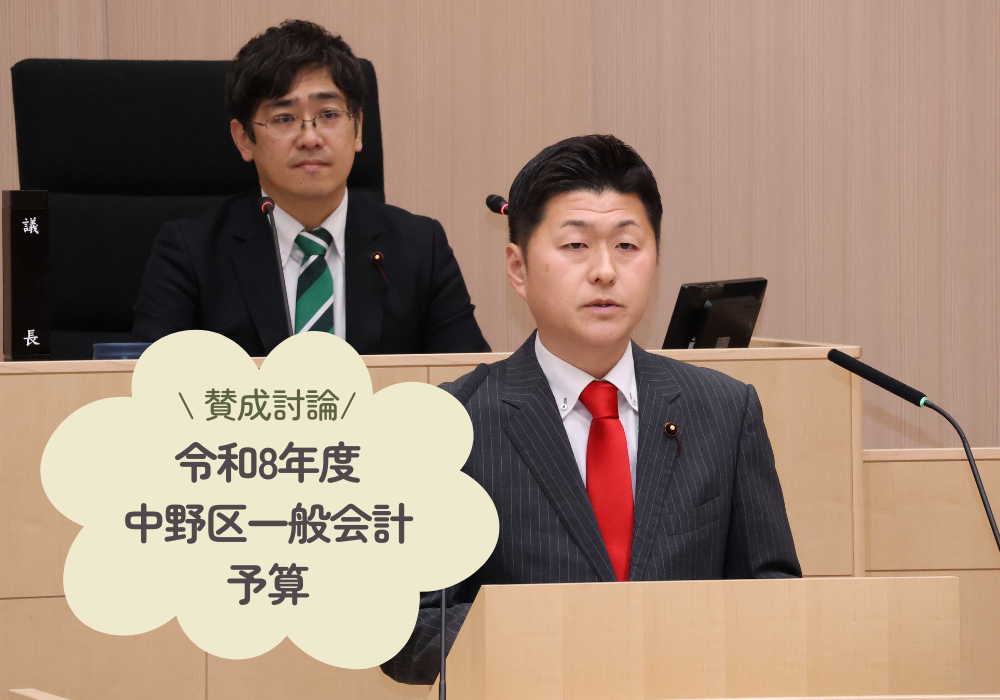 「令和8年度中野区一般会計予算」の議案に対し賛成討論を行いました。